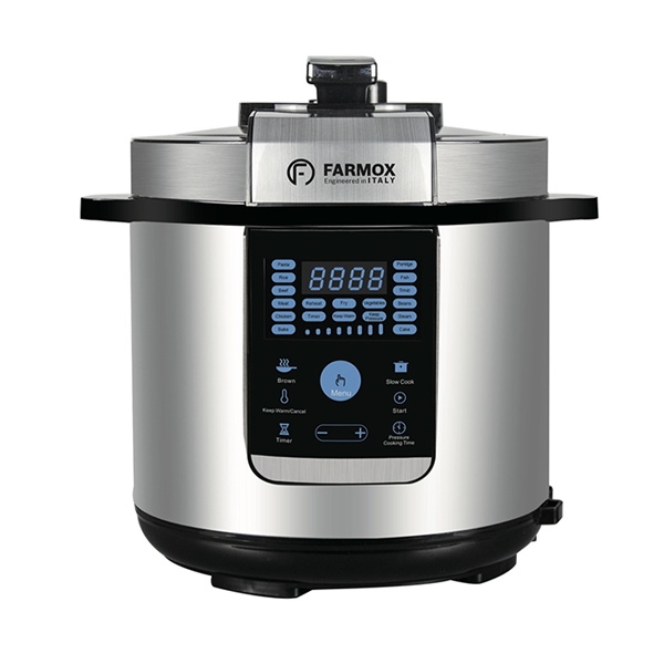 زودپز و پلوپز فارموکس مدل Fx2040 از پر کاربرد ترین و با کیفیت ترین زودپزهای است که به عنوان یک محصول همه کاره به بازار عرضه شده است. این زودپز دارای ظرفیت بالای 6 لیتری می باشد که به لطف این میزان ظرفیت می توان مقدار بالایی از مواد غذایی را درون آن برای پخت و پز قرار داد. به طور کلی ظرفیت 6 لیتر معادل ظرفیت 8 نفر می باشد. همچنین از بدنه ای از جنس استیل که ضد زنگ نیز می باشد ساخته شده است که بسیار مقاوم و محکم می باشد. به علاوه بر روی بدنه ی این محصول یک پنل دیجتالی که لمسی می باشد تعبیه شده است و علاوه بر آن نیز دارای قسمت دیگری که تایمر است، می باشد. در نتیجه به لطف این بخش می توانید تنظیمات دلخواه تان را برای پخت غذای مورد نظر خود بر روی دستگاه اعمال کنید و میزان حرارت و دمای دستگاه آگاه شوید. و از یک دیگ نچسب کیفیت عالی هم بهره می برد. به علاوه توان مصرفی این محصول برابر با 1000 وات می باشد. از دیگر اماکانات و فناوری هایی که برای این زودپزو پلوپز فارموکس مدل Fx2040 استفاده شده است می توانیم به 18 منوی پیش فرض اشاره کنیم که از این طریق می توانید نحوه ی پخت غذای مورد نظر خود را به صورت پیش فرض انتخاب کنید. همچنین این قابلیت را نیز دارد که برنامه پخت و پز را به صورت دستی به دستگاه وارد کنید. در نهایت بهتر است که بگوییم توانایی گرم نگه داشتن غذا، حفظ فشار بخار و تایمر دستی را نیز دارد.