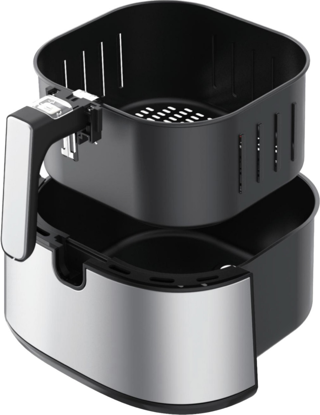 80 – 200 سانتی گراد به صورت دستی تنظیم کنید . همچنین دارای 8 برنامه پخت پیش فرض است که می توان به برنامه پخت های سیب زمینی سرخ شده،ماهی، استیک و کباب اشاره کرد. این سرخکن با فناوری گردش هوای گرم (3 بعدی ) غذا را آماده می کند ، و با کمترین میزان روغن می توانید لذیذ ترین غذا ها را آماده کند . جنس مخزن از نوع تفلون نچسب است و به راحتی قابل شستشو در ماشین ظرفشویی است. جنس جلو بدنه این سرخ کن از نوع استیل ضد زنگ است . و زیبایی خاصی دارد که میتوانید به راحتی با دکوراسیون منزل خود هماهنگ کنید.